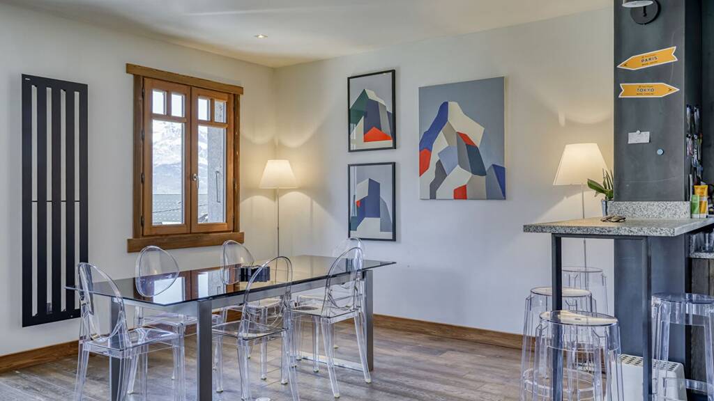 It benefits from an exceptional living environment, combining peace and quiet with immediate proximity to shops and amenities. The chalet has 4 bedrooms, two shower rooms with toilets and a large lounge/games area. The interior has been recently renovated using quality materials, creating a warm, modern atmosphere; The bright living room opens onto a vast 100 m2 terrace, perfect for enjoying the fine weather and uninterrupted views.