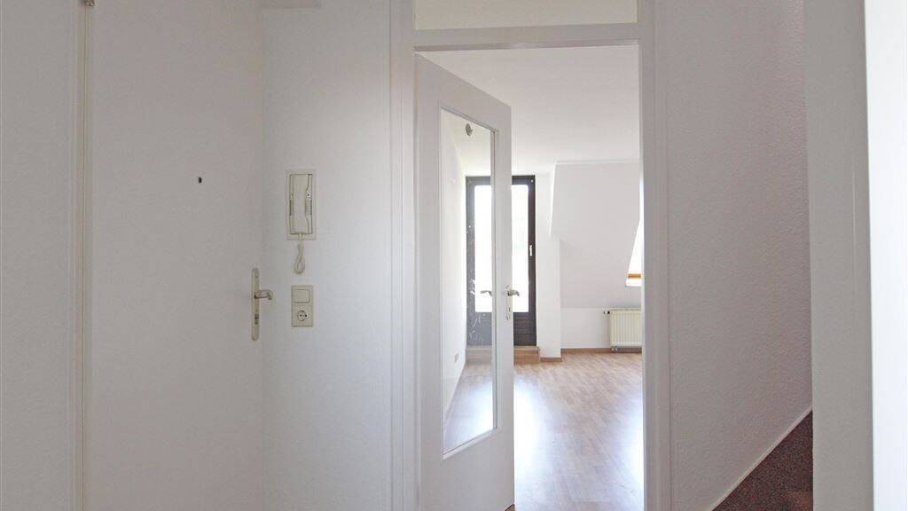 Lassen Sie sich von dieser hübschen Wohnung bezaubern. Gleich auf zwei Balkonen können die Mieter hier entspannen und die Sonne genießen. Die Wohnräume verteilen sich auf zwei Etagen. In der ersten Etage sind ein geräumiges Wohnzimmer mit Balkon, ein praktisches Gäste-WC und eine schöne, helle Küche zu finden. In der zweiten Wohnetage findet man zwei weitere attraktive Zimmer. An einem der beiden Räume grenzt der große Balkon am Giebel an. Auf diesem können sie die Ruhe genießen. Das moderne Badezimmer verwöhnt mit Tageslicht und einer Badewanne. Zwei Abstellkammern sind in den Dachschrägen des Flures integriert. Dieser zusätzliche Stauraum schafft Platz für die Weihnachtsdeko und allerlei andere Dinge. Zusätzlich kann ein Abstellraum im Keller genutzt werden. Komplettiert wird dieses Zuhause durch eine Garage am Haus.