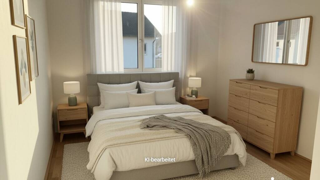 "Die s REAL weist darauf hin, dass in einzelnen Objektbildern KI-gestützte Anpassungen vorgenommen wurden, um z. B. Einrichtungsvorschläge oder Gestaltungsbeispiele zu zeigen. Diese Bilder sind als ,KI-gestützte Visualisierung' gekennzeichnet. Sie dienen ausschließlich der Veranschaulichung und stellen nicht den tatsächlichen Ist-Zustand der Immobilie dar."
