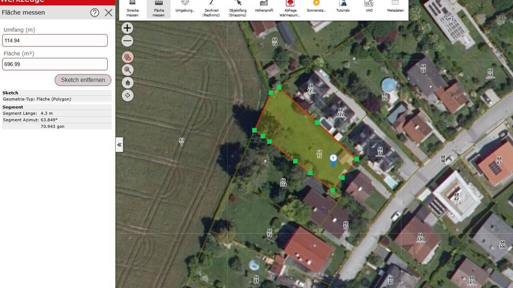 Die im Bebauungsplan der Stadt Salzburg festgelegten Bebauungsgrundlagen sehen eine GRZ (Grundflächenzahl) 0,25 sowie eine GFZ (Geschossflächenzahl) 0,28 - 0,4 vor, mit der Möglichkeit zur Errichtung von 2 Geschossen zuzüglich ausbaubarem Dachgeschoss. Das Grundstück ist als Bauland Erweitertes Wohngebiet gewidmet und bereits voll erschlossen. Derzeit handelt es sich noch um ein großes Grundstück mit einem kleinen Altbestand, die Vermessung und Teilung muss erst durchgeführt werden, angedacht ist eine Grundstücksgröße von ca. 697 m².