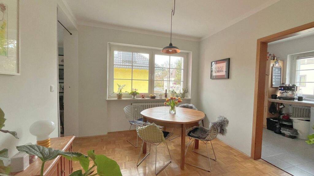 + 1.OG ohne Lift + Balkon nach Westen + solider Parkettboden in Wohn- und Schlafräumen + Küche mit Einbauküche + Bad mit Badewanne + 2 x separates WC + die beiden WCs werden komplett erneuert. + großer beheizter Kellerraum (ca. 10m²) mit Anschluss für die eigene Waschmaschine