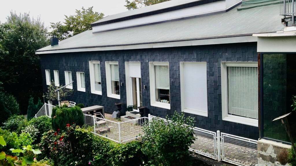Sowohl das Vorderhaus als auch das Hinterhaus wurden aufwendig saniert und gedämmt, wodurch ein angenehmes Wohnklima garantiert ist. Die Außenfassade ist verschiefert und verleiht dem Gebäude einen charmanten und einladenden Charakter.
