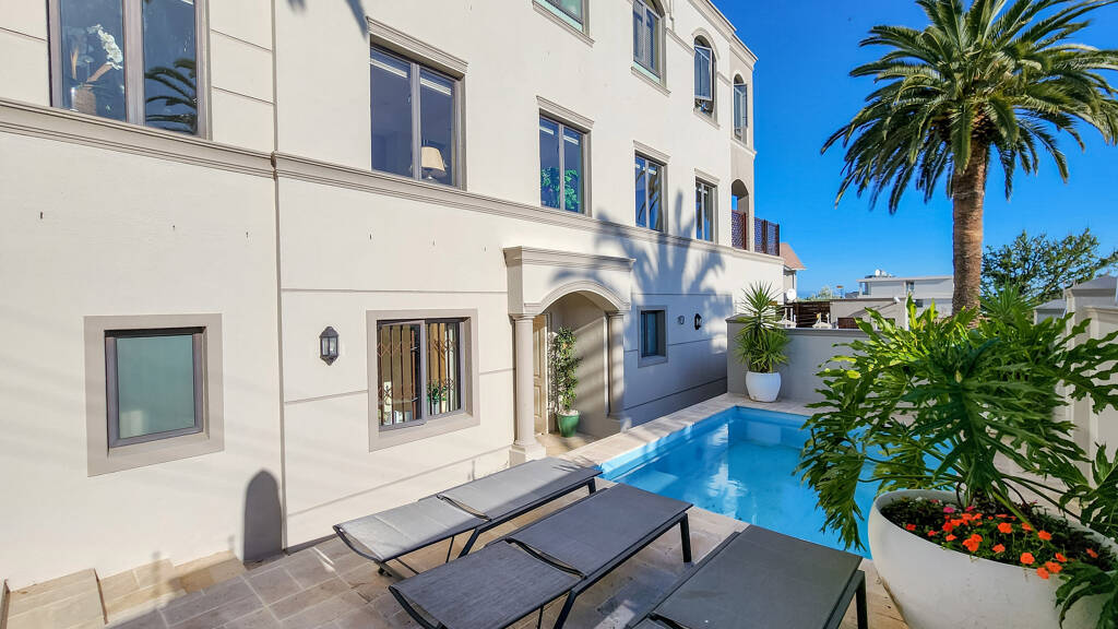 Tauchen Sie ein in den Inbegriff anspruchsvollen Wohnens mit diesem atemberaubenden Doppelhaus als Teil eines kleinen, umzäunten Anwesens mit vier Eigentumswohnungen.?Dieses luxuriöse Gebäude in begehrter Nordlage wurde für den anspruchsvollen Hausbesitzer entworfen und bietet eine Mischung aus elegantem Interieur und außergewöhnlichen Außenwohnbereichen.?Im Erdgeschoss befinden sich zwei Schlafzimmer mit eigenem Bad. Mit einem separaten Eingang eignet es sich perfekt als Gästezimmer oder Mieteinheit.?Die mittlere Ebene präsentiert eine offene Küche und eine Speisekammer. Der Wohn-Essbereich lässt durch große Fenster viel Licht herein und geht auf eine große Terrasse über, die eine wunderschöne Aussicht auf das Meer und die Berge bietet. Da die Terrasse windgeschützt ist, ist sie ein idealer Ort für romantische Sonnenuntergänge, und im Winter können Sie den Gaskamin im Wohnzimmer genießen.?Gelangen Sie in die obere Ebene, um ein geräumiges Hauptschlafzimmer mit französischem Balkon und luxuriösem Bad mit Badewanne und Dusche zu finden. Das zweite Schlafzimmer ist ebenso groß und bietet ebenfalls ein eigenes Badezimmer. Darüber hinaus gibt es zwei weitere Schlafzimmer, die sich ein komplettes Badezimmer teilen. Große Fenster sorgen auch hier für gute Beleuchtung und einen wunderschönen Blick auf das Meer und die Berge.?Der Außenpool auf der Terrasse im Erdgeschoss ist sehr privat und geschützt. Er verfügt über einen schönen einheimischen, wassersparenden Garten und einen schattigen Bereich, der jederzeit zum Grillen einlädt. Das Flachdach eignet sich für die Schaffung eines Dachgartens/einer Dachterrasse mit atemberaubender Aussicht.?Das Anwesen verfügt weiters über eine elektrische Garage mit direktem Zugang und dreifachem Schloss. Der Eingang erfolgt über automatische Sicherheitstore sowie einen 24-Stunden-Wachdienst.