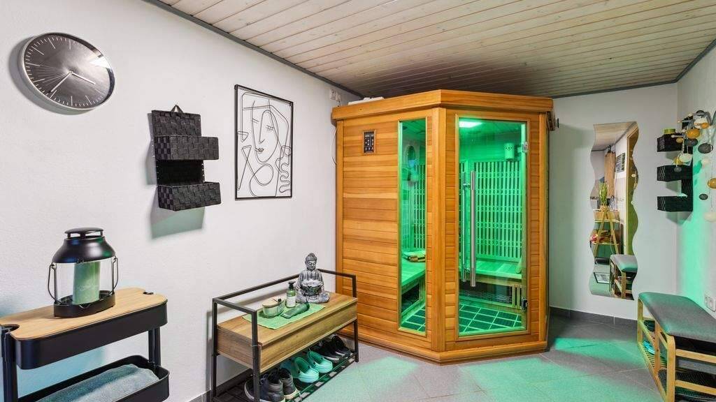 Das Obergeschoss verfügt über 4 Schlafzimmer und ein großes Badezimmer. Der Spitzboden ist gedämmt und eignet sich gut als Lagerfläche. Im Untergeschoss erwarten Sie Heiz- und Vorratsräume. Zusätzlich ist hier auch ein weiteres großes Wohnzimmer mit Terrasse vorhanden. Die weiteren Räume, wie Werkstatt, Wellnessraum mit Dusche/ WC und Infrarotkabine eröffnen Ihnen alle Möglichkeiten der Wohnnutzung oder alternativ eine Einliegerwohnung.