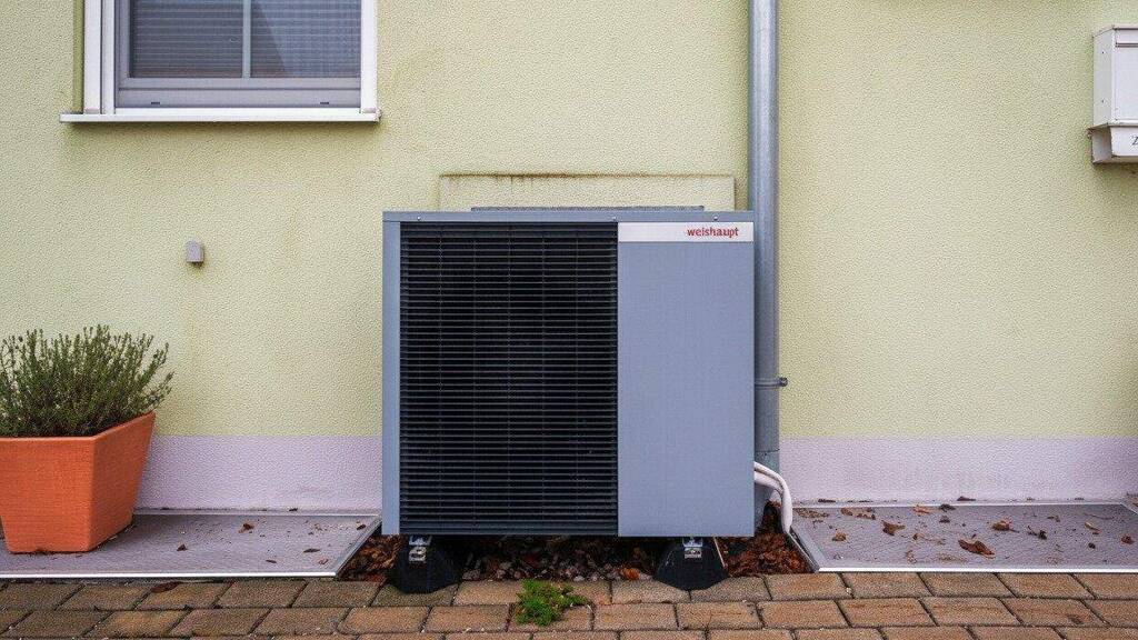 Das Haus wird mit einer Luftwärmepumpe (Fa. Weishaupt) beheizt.