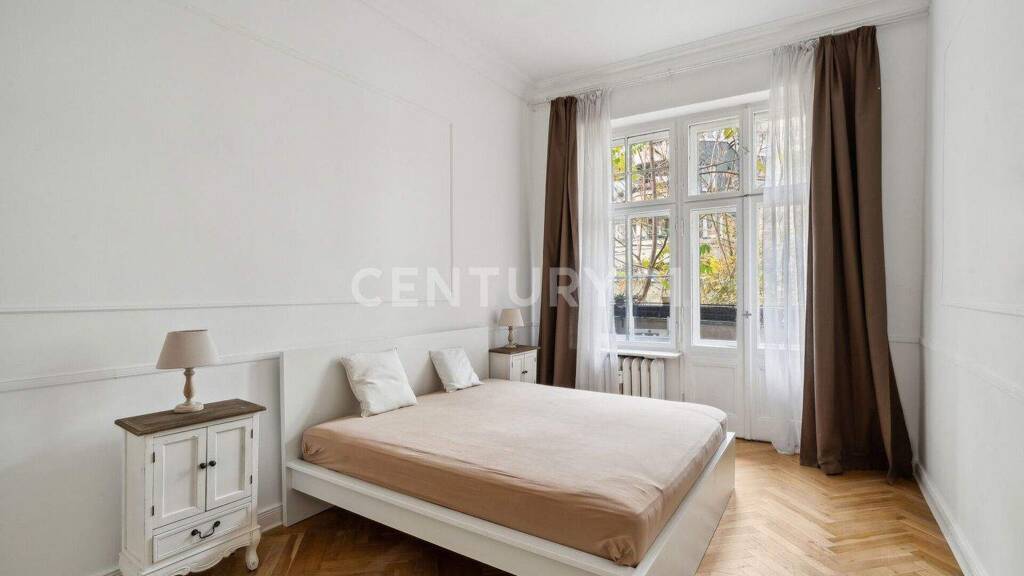 Folgen Sie dem Flur weiter, gelangen Sie in das lichtdurchflutete Esszimmer, welches mit einem großzügigen Holztisch und vier Stühlen zum Verweilen einlädt. Durch prachtvolle Flügeltüren betreten Sie das gemütliche Wohnzimmer mit zwei komfortablen Sofas, einem Kronleuchter und einem Zierkamin als besonderen Blickfang. Von hier aus haben Sie Zugang zum Balkon, der zum Entspannen an der frischen Luft einlädt und zugleich vom angrenzenden Schlafzimmer aus erreichbar ist.