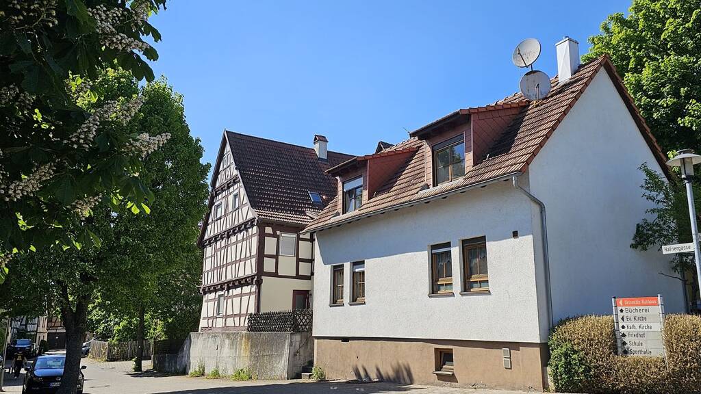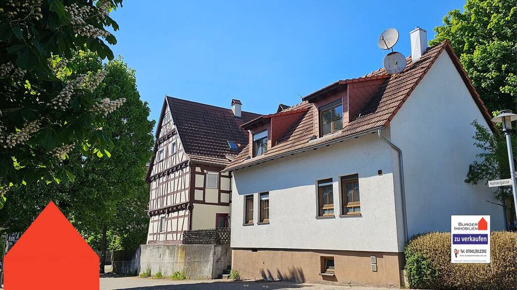 Ein Ensemble aus zwei Häusern, historisches Fachwerk und modernes EFH mit Doppelgarage im Ortskern von Ötisheim