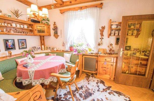 Erdgeschoss: Windfang, Essküche, Stube (mit Kachelofen), Schlafzimmer, Bad (Waschtisch, WC, WM-Anschluss, Dusche)