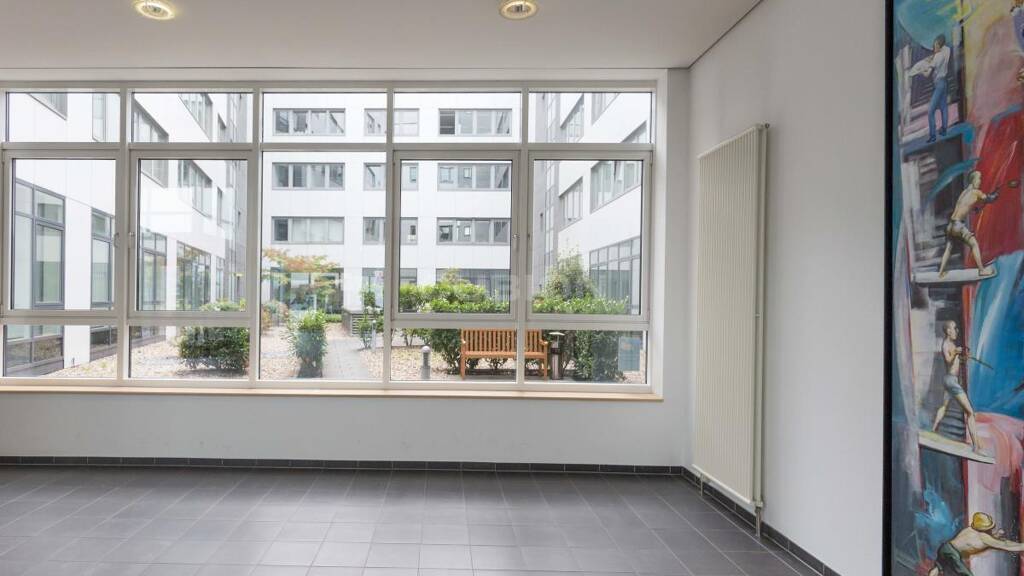 Bodenbelag: Teppichboden, nach Mieterwunsch EDV-Verkabelung: Mietersache Kabelführung: Brüstungskanäle Kühlung: teilweise klimatisiert, nach Vereinbarung Sonnenschutz: außenliegender, elektrischer Sonnenschutz Küche: Einbauküche Beleuchtung: LED-Beleuchtung Aufzug: Personenaufzug Empfang: Elektrische Zugangskontrollen Heizung: Fernwärme Barrierearm: ja Baujahr: 2001 Achsmaß: 1,35 m Deckenhöhe: EG 3,75 m, OG 3,30 m Raumtiefe: nicht einheitlich Parkplätze: Tiefgaragenstellplätze Sonstiges: - Lüftungsanlage mit Wärmerückgewinnung - Installation von weiteren E-Ladesäulen möglich