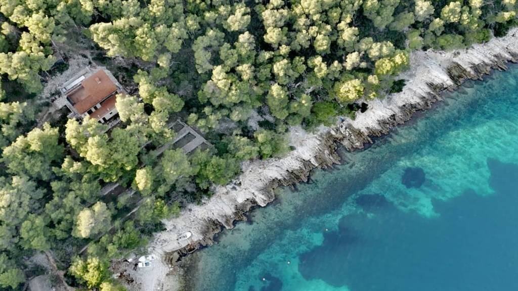 Das Anwesen besteht aus mehreren Baugrundstücken mit einer Gesamtfläche von 6.707 m², direkt am Meer gelegen, eingebettet in einen natürlichen Pinienwald, mit direktem Zugang zu einem Kiesstrand sowie offenem Panoramablick auf das Meer und die umliegenden Inseln.