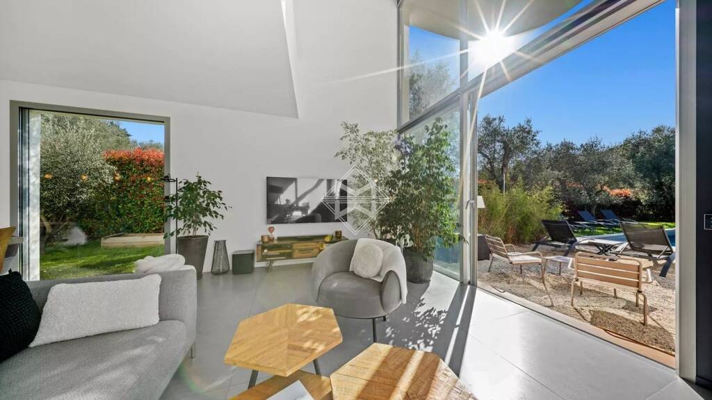 Nur wenige Minuten vom charmanten Dorf Valbonne entfernt, im Herzen einer begehrten Umgebung in unmittelbarer Nähe zu Geschäften, Restaurants und internationalen Schulen gelegen, bezaubert diese bemerkenswerte Architektenvilla durch ihre zeitgenössische Eleganz und hochwertige Ausstattung. Mit einer Fläche von ca. 249 m² bietet die Immobilie großzügige Räume, unterstrichen von klaren Linien und herausragender Helligkeit. Das Herz des Hauses bildet eine geräumige, ausgestattete Küche mit einer zentralen Granitinsel, ein echter Ort der Geselligkeit, geöffnet zu großzügigen Empfangsbereichen. Speisezimmer und Wohnzimmer setzen sich harmonisch nach außen fort und ergeben eine perfekte Verbindung zum gestalteten Garten und dem Pool. Die eindeutig moderne Architektur wird durch breite Fensterfronten von bemerkenswerter Größe sowie durch eine spektakuläre Treppe mit luftiger Gestaltung hervorgehoben - eine wahre ästhetische Signatur des Ortes. Der Schlafbereich bietet vier geräumige Zimmer, darunter zwei elegante Suiten, sowie ein großes Büro, ideal für Homeoffice. Eine auf der Empore eingerichtete Zweitlounge ergänzt das Ensemble und bietet zusätzlichen Raum zur Entspannung oder Rezeption. Nur 30 Minuten vom Internationalen Flughafen Nizza entfernt verbindet dieses außergewöhnliche Anwesen Raffinesse, Komfort und eine privilegierte Lage zu einer seltenen Lebensqualität an der Côte d'Azur.