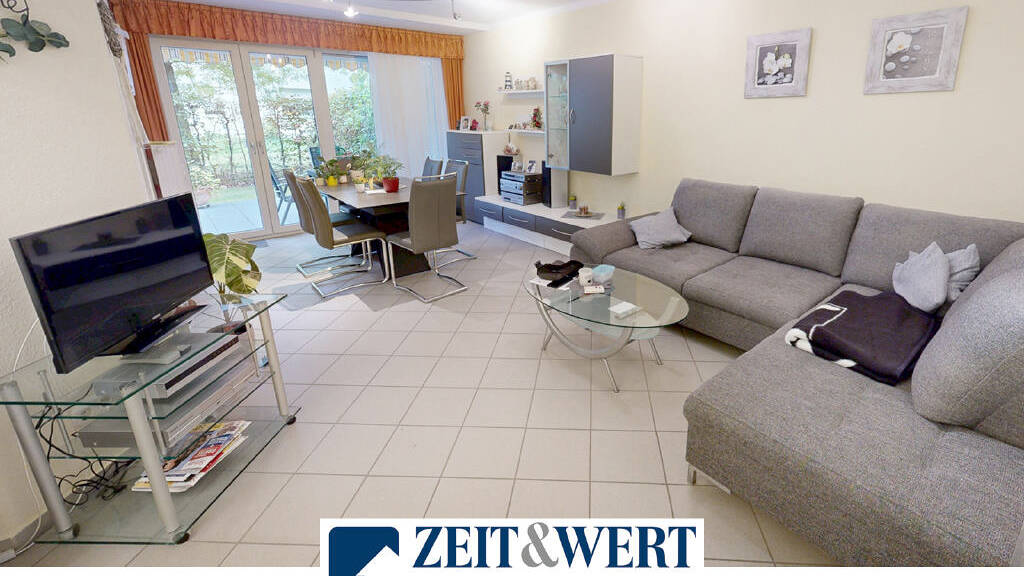 Mittels eines offenen Durchgangs gelangt man in die stilvolle, weiße Einbauküche mit graumelierter Melamin-Arbeitsfläche und Dunstabzugshaube. Ein Ort, an dem sich Funktionalität und Design perfekt ergänzen. Auch von hier führt eine Terrassentür hinaus auf die sonnige Terrasse mit Markise. Der kleine, komplett von einer Buchenhecke eingefasste Gartenanteil schafft Privat-sphäre und lädt mitten in der Stadt zum Entspannen im Grünen ein.