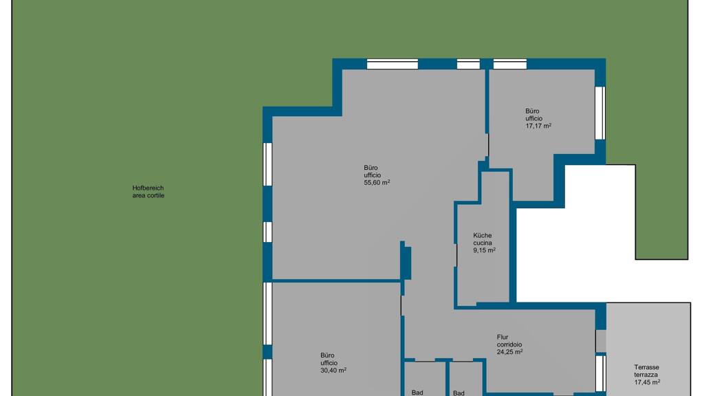 Büro mit großem Hofbereich