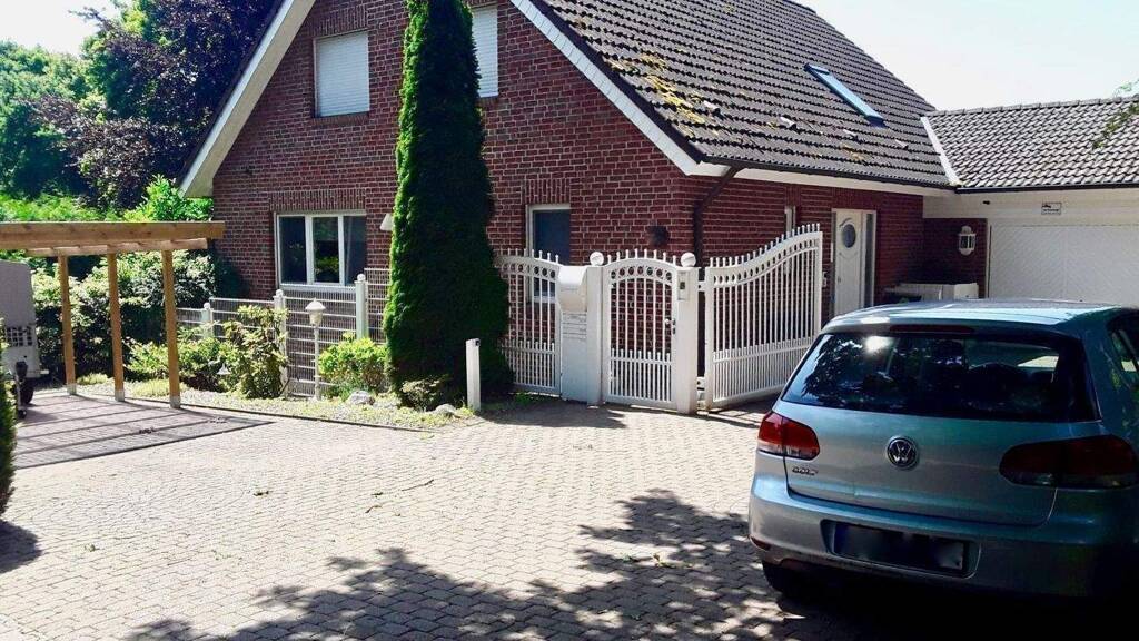 Ein elektrisches, schmiedeeisernes Tor empfängt Sie, und da erwartet Sie auch schon das entzückende Anwesen, mit rotem Landhaus-Bruchklinker und , harmonisch in weiss, abgesetzten Tür und Fenster-Elementen.