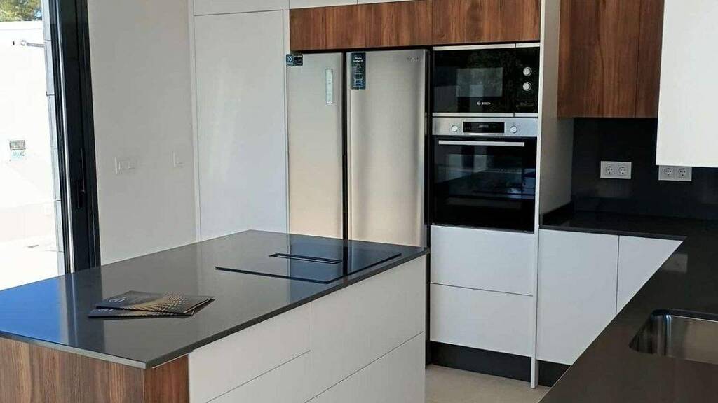 Die Villa verfügt über ein geräumiges und helles Wohnzimmer mit offener Küche, wodurch ein fließender Übergang zwischen den Räumen entsteht - perfekt für den Alltag und zum Bewirten von Gästen. Die Küche ist mit modernsten Geräten ausgestattet und garantiert ein wunderbares kulinarisches Erlebnis. Das lichtdurchflutete Wohnzimmer öffnet sich direkt zur Terrasse, zum Garten und zum Pool und ermöglicht Ihnen so, das Leben im Innen- und Außenbereich in vollen Zügen zu genießen.
