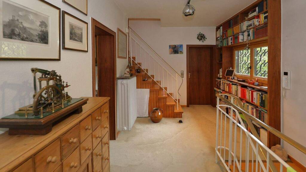 Dieses freistehende Einfamilienhaus aus dem Baujahr 1965 befindet sich in begehrter, ruhiger Lage von Overath-Mittelbech - am Ende einer wenig befahrenen Sackgasse, direkt angrenzend an eine weitläufige Wiese. Das rund 722?m² große Grundstück bietet nicht nur viel Platz, sondern auch ein hohes Maß an Privatsphäre dank der uneinsehbaren Lage und einem gewachsenen Baumbestand. Das Haus wurde in Hanglage errichtet und ist daher teil unterkellert - mit zusätzlichen Nutzflächen und direktem Zugang zum Garten. Der großzügige Wohnbereich öffnet sich über breite Fensterfronten zur Natur und führt auf mehrere Terrassen sowie einen umlaufenden Balkon - ideal für sonnige Stunden, gesellige Abende oder entspannte Rückzugsorte im Grünen. Die Immobilie verfügt über eine solide Bausubstanz, ist jedoch renovierungsbedürftig und bietet somit viel Potenzial zur individuellen Gestaltung. Bereits modernisiert wurden die Fenster, und die Ölzentralheizung wurde im Jahr 2003 ausgetauscht. Ob als Lebensmittelpunkt für eine Familie, als naturnahes Refugium oder zur Kombination von Wohnen und Arbeiten - dieses Haus überzeugt durch seine geschützte Lage, das großzügige Grundstück und den unverbaubaren Blick ins Grüne.