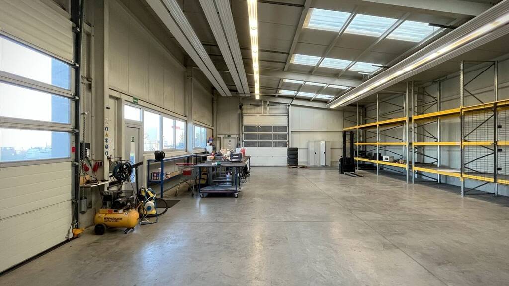 Diese vielseitige Gewerbeimmobilie bietet ideale Bedingungen für Handwerksunternehmen, Produktion oder Lagerung. Die Flächen gliedern sich in zwei separate Hallenbereiche: einen beheizbaren Teil sowie einen unbeheizten Teil in gleicher Größe, jeweils mit etwa 214 m². Die Halle verfügt über zwei Rolltore für reibungslose Anlieferung und Warenausgabe. Beide Hallenbereiche sind durch ein inneres Rolltor miteinander verbunden. Direkt angrenzend liegt eine großzügige, teils gepflasterte Außenfläche mit rund 871 m². Sie bietet ausreichend Rangier- und Stellmöglichkeiten für LKW und Waren, was den täglichen Betrieb deutlich erleichtert. Büro- und Sozialräume stehen bereit. Die Sanitärbereiche bestehen aus WC, Duschraum mit Waschmaschinenanschluss und Umkleide. Zusammen mit Teeküche, Pausenraum und einem Arbeitsplatz sind sie in einem modularen Anbau untergebracht, der direkt an die Halle anschließt und mit ihr verbunden ist.