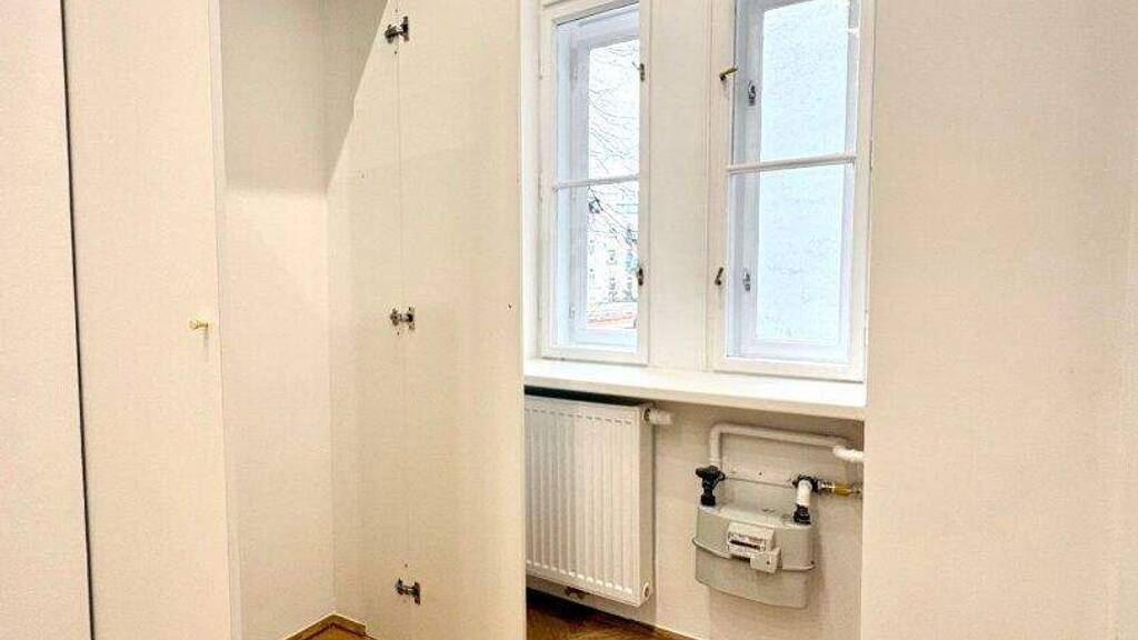 Die Wohnung im 1. Stock mit Lift verfügt über ca. 65m² Wohnfläche und zwei gut geschnittene Zimmer, die vielseitig nutzbar sind - ob als Wohn- und Schlafzimmer oder als Wohn- und Arbeitsbereich. Die Fenster der Wohnung gehen sowohl in die Schöffelgasse als auch in den Innenhof. Die separate Küche bietet ausreichend Platz zum Kochen und Genießen. Ein echtes Highlight ist das wunderschöne Badezimmer mit Badewanne, Waschmaschinenanschluss, WC und einem charmanten Buntglasfenster, das für besonderes Licht und eine ganz eigene Note sorgt. Ein geräumiges Vorzimmer rundet das stimmige Raumkonzept ab. Im Zuge der Sanierung wurde ein wunderschöner neuer Fischgrät-Parkettboden verlegt und die originalen Details, soweit möglich, erhalten. Elektrik und Heizung (Gas-Etagenheizung) wurden komplett erneuert. Das elegante Badezimmer verfügt über zeitlose, großformatige weiße Fliesen. In der Küche sind die Anschlüsse bereits vorbereitet. Ein Kellerabteil ist zugeordnet.