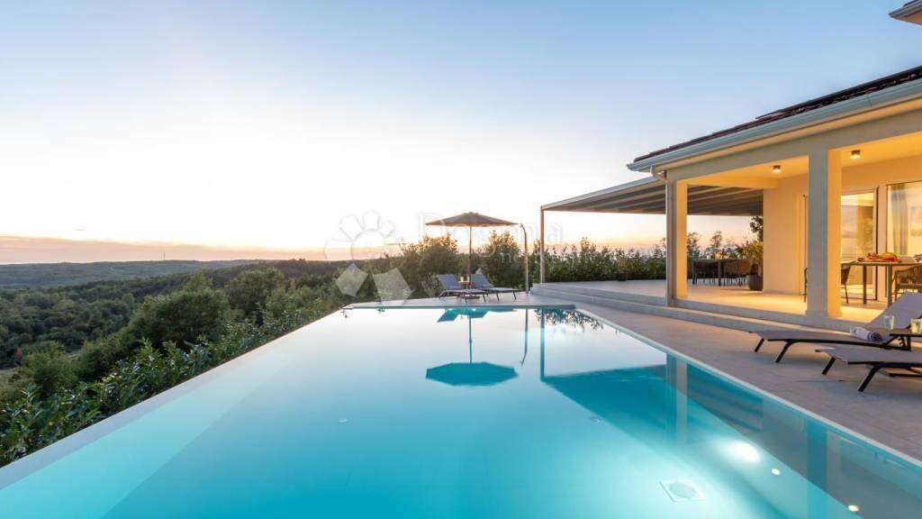 Auf den ersten Blick werden Sie von der Intimität dieser modernen Villa auf einem Grundstück von 1410 m mit einem Infinity-Pool von 55 m, umgeben von viel Grün und einem einzigartigen Blick auf das Meer, die Alpen, Motovun, Groznjan, Vizinadu, angezogen.