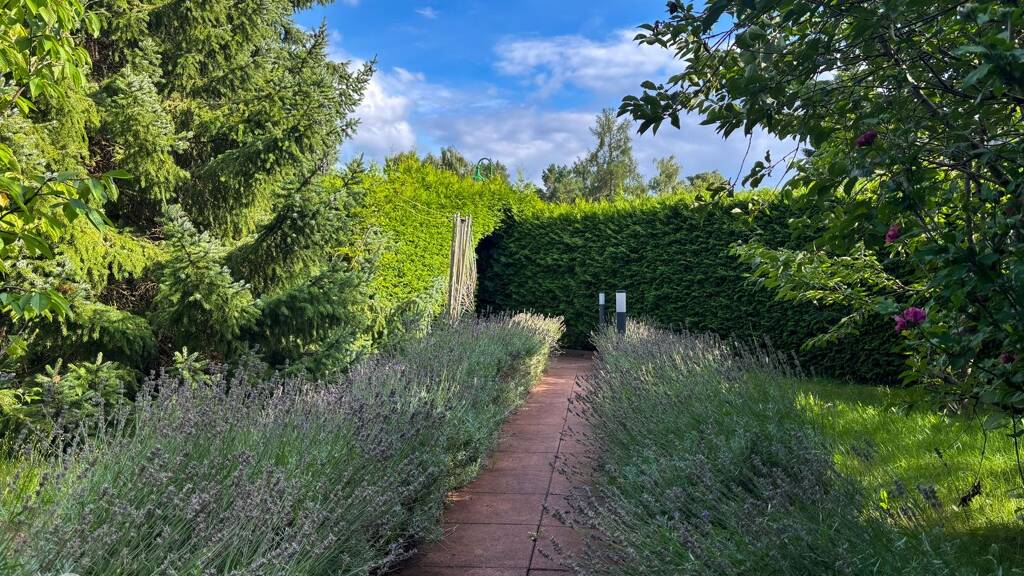 Die Immobilie liegt auf einem 869 m² großen Grundstück in einer ruhigen Anwohnerstraße. Das Grundstück ist durch hohe Hecken eingefasst und bietet dadurch eine geschützte, uneinsehbare Wohnsituation – ideal für alle, die Privatsphäre und Ruhe schätzen.