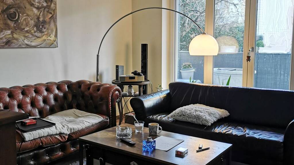 Die Wohnung befindet sich mehrere Stufen über Grund, so dass man sich innen innen wie in einer "Beletage" fühlt, eine Einsehbarkeit von außen aber kaum gegeben ist.