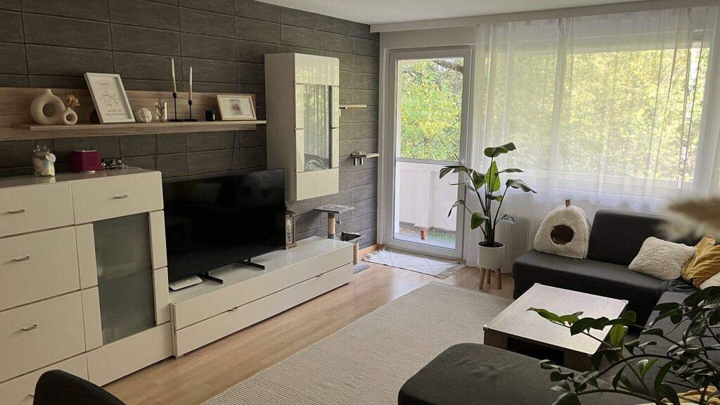 Bereits beim Betreten spürt man die Großzügigkeit: Ein einladender Vorraum eröffnet den Zugang zu allen Räumen - drei separat begehbare Zimmer, eine Küche mit Fenster, Bad, separates WC sowie ein praktischer Abstellraum. Besonders hervorzuheben ist das rund 26 m² große Wohnzimmer mit direktem Zugang zur Loggia, die einen herrlichen Blick ins Grüne bietet.