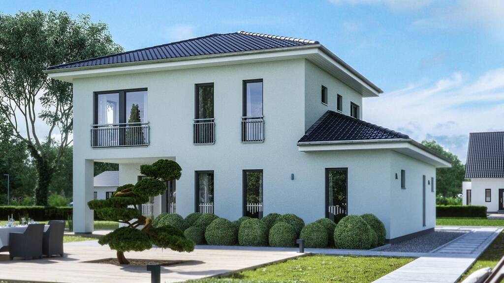 - Ausbauhaus - mineralischer Grund- und Außenputz - Dacheindeckung Betondachsteine - hochwertigem Zimmermannsdachstuhl - hochwertige Haustür - Fenster (Wärmeschutzfenster, 3-fach verglast) - Rollläden aus Aluminium (im EG und DG, einbruchhemmend) - Dachrinnen und Regenrohre aus Titanzink - Fensterbänke (außen, Aluminium) - Aufbau und Anlieferung Ihres Hauses - Bauleitung und Baubetreuung - Architektenleistungen - Grundstück (im Preis berücksichtigt) - Bodenplatte - Frostschürze - Versicherung während der Bauphase