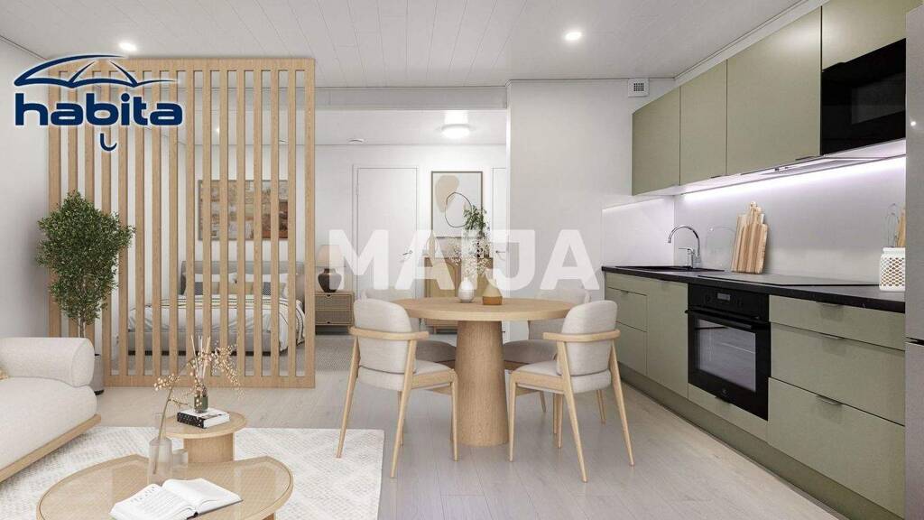 Jetzt zum Verkauf stehendes, bezugsfertiges Studio-Apartment in toller Lage in Sörnäinen. Dieses moderne, neu renovierte, 36 m² große Studio-Apartment bietet einen geräumigen und leicht anpassbaren Wohnraum, in dem das Wohnzimmer und die offene Küche ein kohärentes Ganzes bilden. Die lineare Küche ist mit den hochwertigsten Geräten ausgestattet und bietet eine hervorragende Umgebung zum Kochen. Frische Oberflächen runden das Aussehen der Wohnung ab.