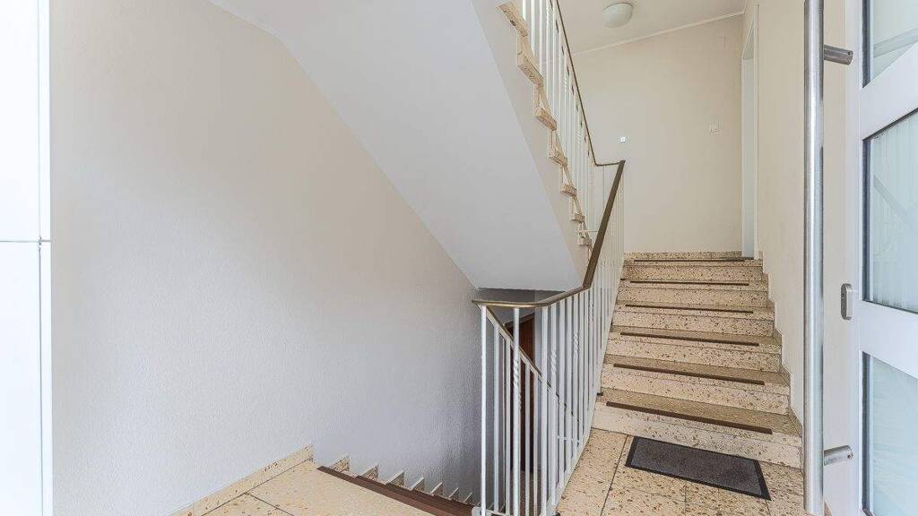 Die Wohnung verfügt über ein innenliegendes, schlicht und zeitlos gestaltetes Badezimmer mit Badewanne. Im Keller des Hauses befinden sich ein der Wohnung zugehöriger Kellerraum sowie ein gemeinschaftlich nutzbarer Trockenraum. Die Garage sowie ein zusätzlicher Außenstellplatz runden das Angebot ab.