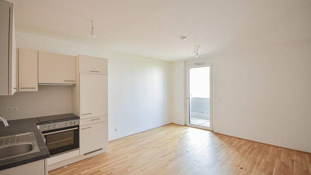 Ab sofort gelangt zur Vermietung eine 1-Zimmer Wohnung in urbaner Atmosphäre. Die helle Wohnung verfügt über einen Vorraum, ein modernes Badezimmer mit Dusche, Waschmaschinenanschluss und WC, einen Wohnbereich mit einer modernen, offenen Küche, sowie über einen Balkon. Die 3-fach-verglasten Fenster sind mit elektrischer Außenbeschattung ausgestattet. Die Wohnräume sind mit schönem Parkettboden ausgestattet und die Nassräume mit Fliesen verlegt.