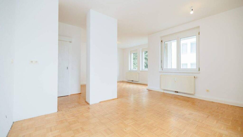 Beim Betreten der Wohnung gelangen Sie zunächst in einen großzügigen Vorraum, von dem aus das separate WC erreichbar ist. Der anschließende Wohnbereich, das Schlafzimmer und das Kinderzimmer sind zentral begehbar. Die Küche ist separat, gut belichtbar und funktional nutzbar. Das Badezimmer überzeugt durch moderne Verfliesung, ein Fenster, eine Badewanne, Waschbecken und Waschmaschinenanschluss. Die sonnige Loggia mit Blick in den grünen Innenhof rundet das Raumangebot ab.