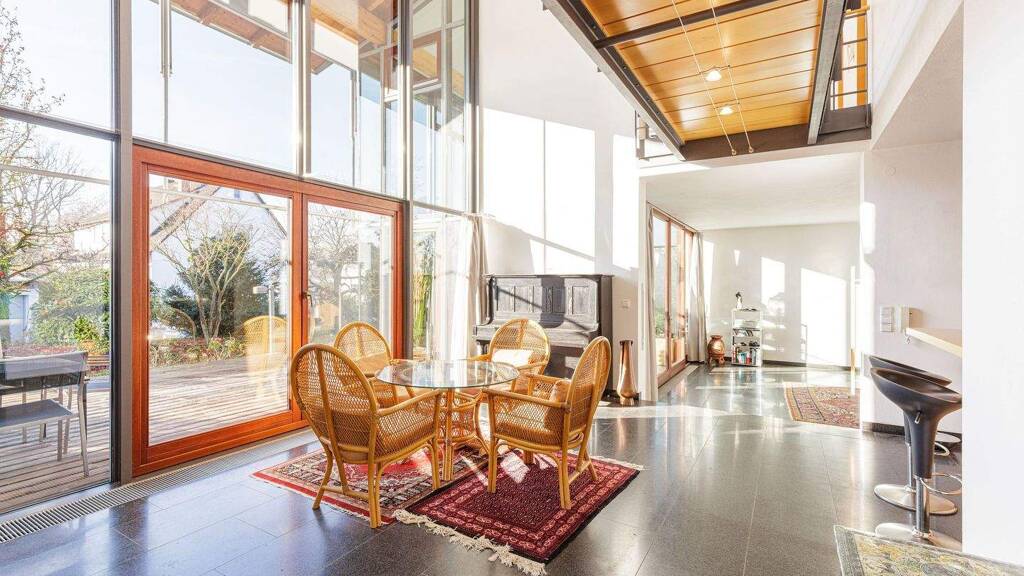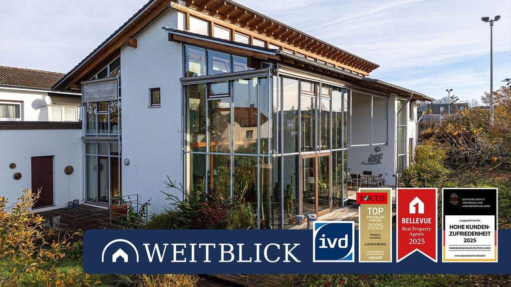 Wir freuen uns, Ihnen diese außergewöhnliche Architektenvilla in Marbach am Neckar präsentieren zu dürfen. Auf insgesamt ca. 260 m² Wohnfläche befinden sich derzeit zwei separate Wohneinheiten, die bei Bedarf problemlos zu einer großen Einheit zusammengeführt werden können. Das gesamte Gebäude besticht durch seine besondere Architektur und den einzigartigen Wohncharakter. Die Villa wurde 1995 von einem Architekten geplant und gebaut - entsprechend prägen stilvolle, moderne Elemente das Erscheinungsbild. Großzügige Glasfronten in südlicher Ausrichtung bilden die Grundlage für ein modernes, energieeffizientes Wohnkonzept. Sie lassen reichlich Tageslicht in die Räume strömen, schaffen ein helles, freundliches Ambiente und verleihen dem Zuhause ein außergewöhnliches Wohngefühl mit hoher Aufenthaltsqualität. Ergänzend dazu ist die Südseite mit einem effektiven Sonnenschutz ausgestattet, der den Innenraum vor übermäßiger Hitze und zu starker Sonneneinstrahlung schützt und so auch an warmen Tagen ein angenehmes Raumklima gewährleistet.