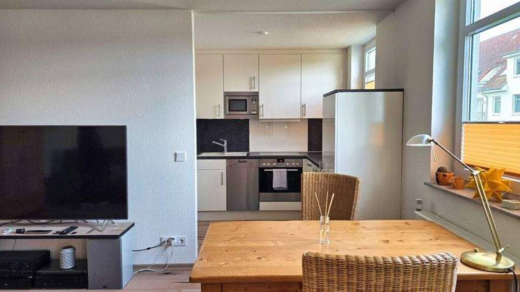 Willkommen in Ihrem neuen Zuhause! Diese exklusive 2-Zimmer-Wohnung befindet sich in einem soliden, 3-geschossigen Massivhaus, das Teil eines ruhigen Wohnensembles aus sechs fast baugleichen Gebäuden ist. Die Wohnung befindet sich in der 3. Etage und ist nach Westen ausgerichtet. Sowohl der Balkon als auch die Fenster der Wohnräume und der Küche werden dadurch mit reichlich natürlichem Licht versorgt.
