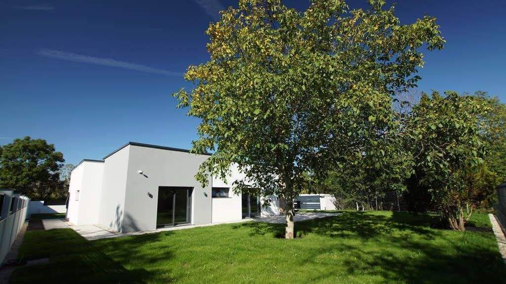 Der neu gebaute bezugsfertige Architekten-Bungalow steht auf einem 1.016 qm großen Grundstück in bevorzugter Wohnlage von Halle (Saale), hier in Halle-Dölau.