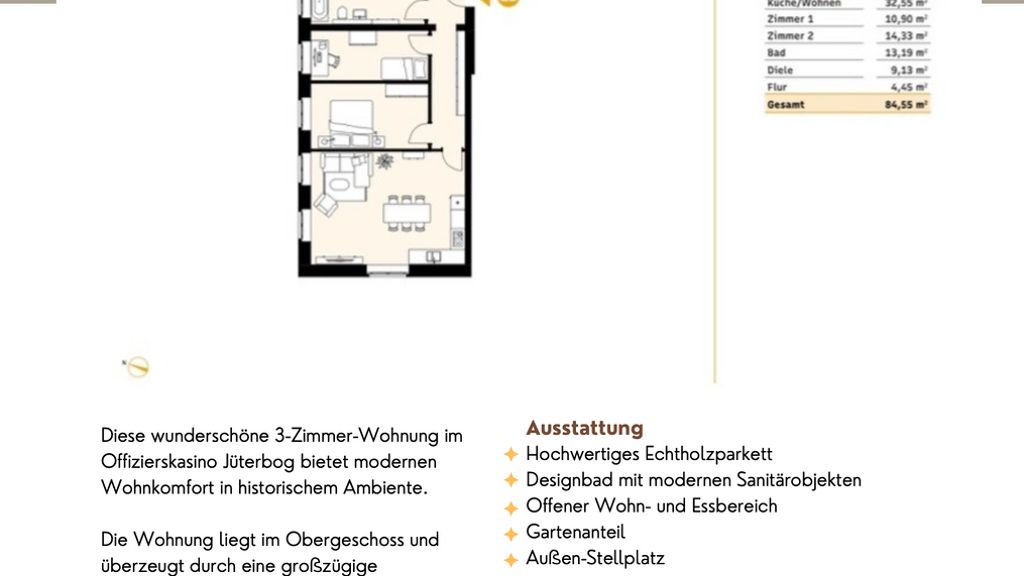 WOHN T RAUM - Exklusive 3-Zimmer-Wohnung mit Gartenanteil im Offizierskasino Jüterbog