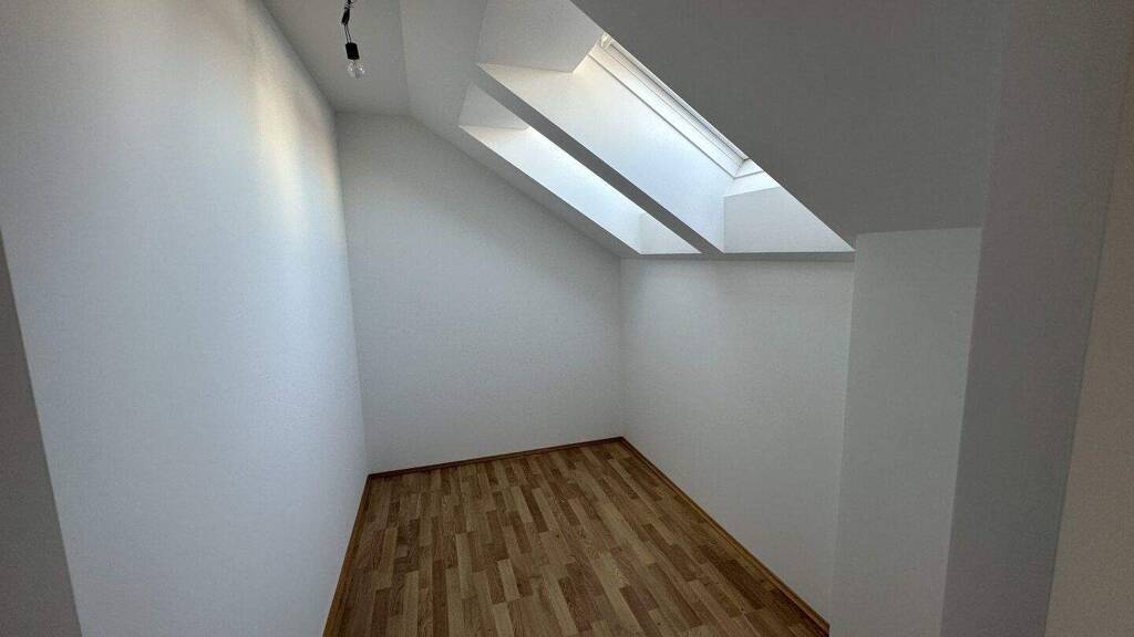 Die 2-Zimmer Wohnung ca. 87,89 m² Wohnfläche befindet sich im Dachgeschoss. Über den Vorraum erreichen sie bequem Bad mit WC und das erste große Zimmer, welches sich als Wohnzimmer, Küche und Essbereich auszeichnet, von wo aus auch der Balkon (ca. 4,45 m²) zu betreten ist. Des Weiteren gelangen Sie aus dem Wohnbereich in die beiden anderen Zimmer, die miteinander verbunden sind. Die Raumaufteilung der Wohnung gliedert sich wie folgt: