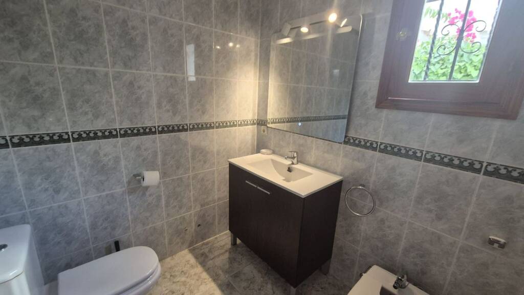 Das Haus liegt auf einem 350?qm großen Grundstück und bietet eine Wohnfläche von ca. 150?qm. Im Erdgeschoss befindet sich ein großzügiges Wohn- und Esszimmer mit direktem Zugang zur überdachten, nach Süden ausgerichtete Terrasse (ca. 20?qm), eine separate, voll ausgestattete Küche, ein Schlafzimmer mit Bad en suite sowie ein Gäste-WC. Im Obergeschoss befinden sich zwei weitere Schlafzimmer, ein Badezimmer sowie ein großer Balkon mit Fernblick bis hin zum Gebirge.