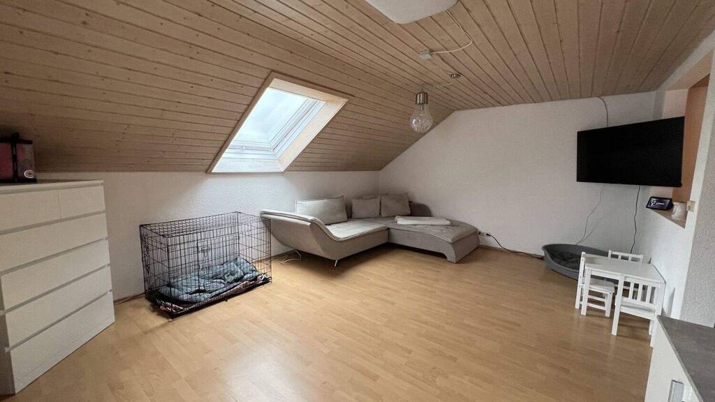 Im Dachgeschoss erwartet Sie ein großzügiger Wohn- und Essbereich mit Zugang zum Balkon, der durch seine Helligkeit und den offenen Schnitt überzeugt.