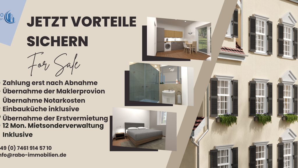 In der Donaustraße 33, 78567 Fridingen an der Donau entsteht durch eine hochwertige Kernsanierung ein modernes Mehrfamilienhaus nach KfW-40 (EE) Standard. Die Wohnungen mit 1 oder 2 Zimmern bieten gut durchdachte Grundrisse und eignen sich sowohl zur Eigennutzung als auch zur Kapitalanlage. Auch eine Kombination aus beidem - erst selbst einziehen, später vermieten - ist durchaus denkbar.