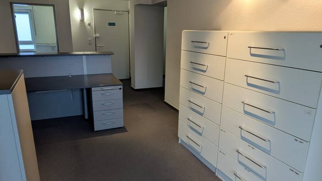 Es stehen neun Räume zur Verfügung. Die Räumlichkeiten wurden seit Baubeginn durch medizinische Berufe genutzt. Die Behandlungsräume verfügen über ein kleines Waschbecken. Alle Fenster haben Aussenjalousien. Der Empfangsbereich ist mit Mobiliar ausgestattet. Sowohl von der Küche aus als auch aus dem Chefzimmer kann die kleine Terrasse betreten werden. Im Sommer kann hier die Mittagspause gut verbracht werden. Es gibt ein großes Besucher-WC /behindertengerecht als auch eine Personaltoilette mit Schließfachschrank.