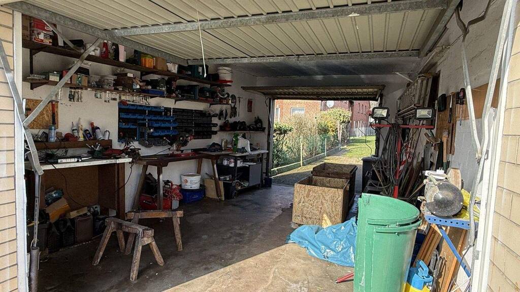 Auf dem Grundstück befinden sich zwei Garagen, eine Terrasse sowie ein großer Garten mit unverbaubarem Ausblick. Es handelt sich um eine nahezu alleinstehende Lage mit nur einem direkten Nachbarn.