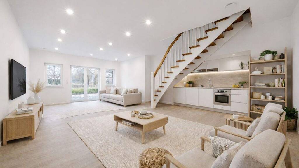Zur besseren Vorstellung der Raumwirkung wurden teilweise digitale Möblierungen (Home Staging) verwendet. Diese dienen ausschließlich der Visualisierung möglicher Einrichtungskonzepte und stellen nicht den tatsächlichen Ausstattungsumfang dar.