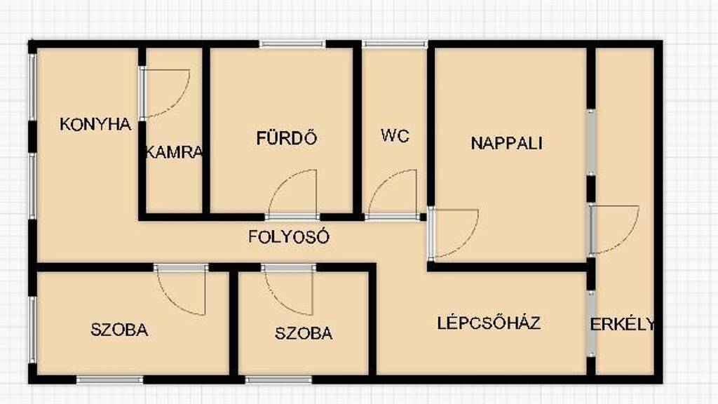 -Obergeschoss: 2 Zimmer, geräumiges Wohnzimmer, Balkon, Küche mit Esszimmer, Speisekammer, Badezimmer, separates WC.