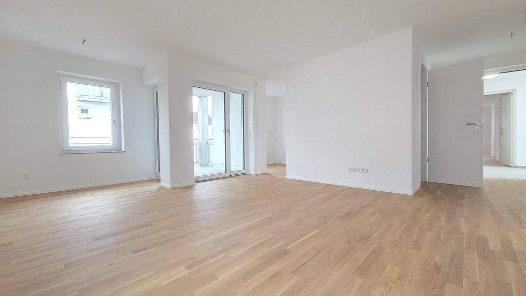 Der offen gestaltete Wohn- und Essbereich bildet das Herzstück der Wohnung und bietet direkten Zugang zum Balkon, der sich harmonisch zwischen Küche (ohne Einbauküche) und Wohnraum einfügt. Große Fensterflächen sorgen für eine helle, freundliche Atmosphäre und lassen die Räume offen und einladend wirken. Die moderne, barrierearme Ausstattung erfüllt zeitgemäße Wohnansprüche.