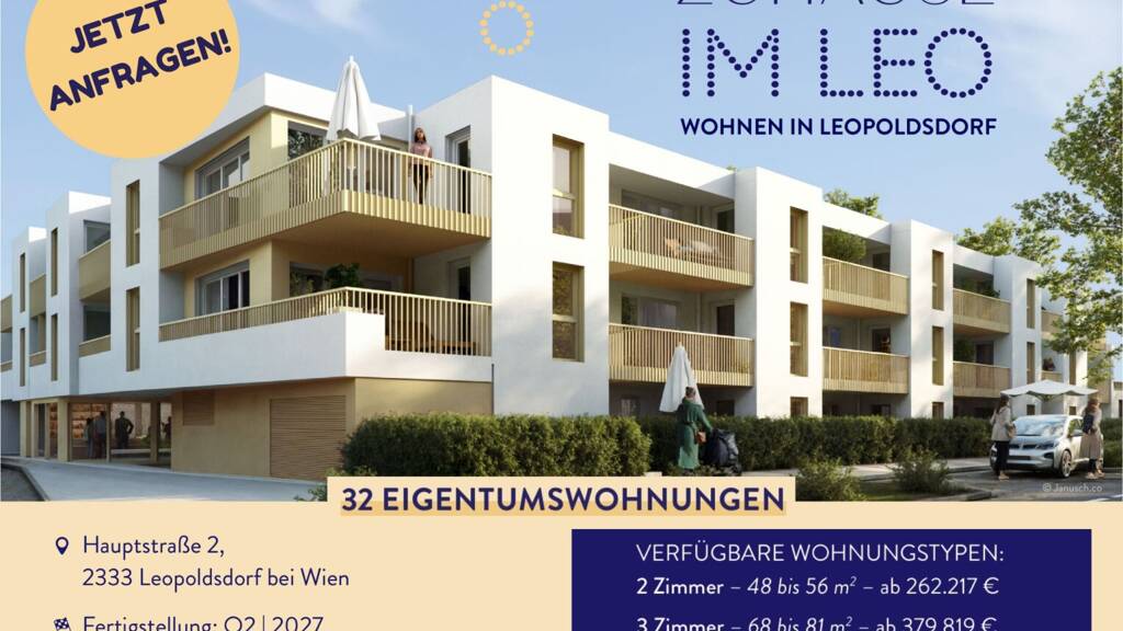 Erleben Sie die Einzigartigkeit von "_Zuhause im Leo_" - wo die Verbindung von Standort und emotionaler Sicherheit zu einem harmonischen Lebensstil verschmilzt. Wir laden Sie herzlich ein, ein Teil dieses besonderen Projekts zu werden und freuen uns darauf, Ihnen ein neues Zuhause im Herzen von Leopoldsdorf bieten zu dĂĽrfen.