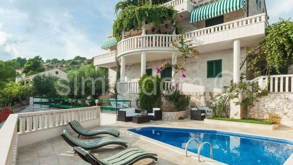Zum Verkauf steht eine atemberaubende Villa, nur 10 Meter vom türkisblauen Meer entfernt. Die Oberfläche der Villa ist 530 qm und es besteht aus dem Haupthaus mit 6 Wohnungen und 2 kleineren Objekten. Das großzügige Grundstück von 565 qm umfasst große Terrassen mit einem Essbereich im Freien, einem charmanten Pool und einem gepflegten Terrassengarten. Die Immobilie wird komplett möbliert und ausgestattet verkauft und es wurden nur hochwertige Materialien (wie Brac Stein) im Bauprozess verwendet. Dank dieser einzigartigen Lage kann der zukünftige Käufer einen privaten Zugang zum Meer sowie einen privaten Liegeplatz für sein Boot genießen. Die Immobilie eignet sich hervorragend als Zweitwohnsitz fernab vom Lärm der Stadt und stellt auch eine Geschäftsinvestition mit hervorragendem und langfristigem Vermietungspotenzial dar. Die Standardgeschäftspolitik unserer Immobilienagentur besteht darin, eine Besichtigung der Immobilie zu organisieren, nachdem der Kunde unseren Standardagenturvertrag unterzeichnet hat. Die Unterzeichnung dieser Vereinbarung ist eine Grundvoraussetzung für weitere Aktivitäten im Zusammenhang mit dem Immobilienkauf, die auf dem Immobilienmaklergesetz und dem Datenschutzgesetz beruhen.