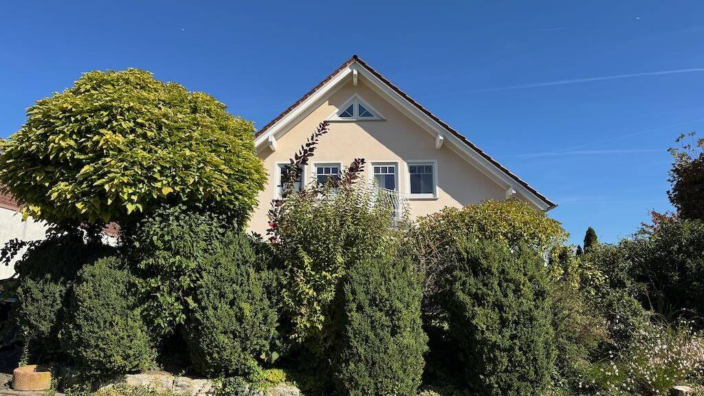 Das freistehende Architektenhaus wurde in Massivbauweise errichtet und überzeugt mit seinem genialen Grundriss und dem tollen Ausblick in die Natur - die Lage auf einer Anhöhe sorgt für Ruhe und unverbauten Sonnenschein.