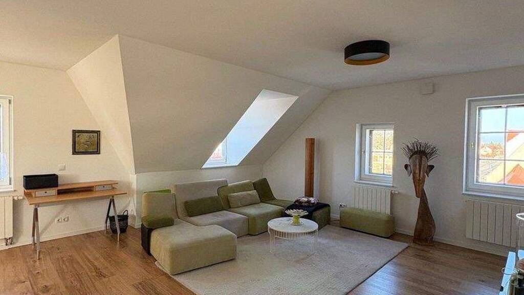 In einem denkmalgeschützten Gebäude in der Barockstadt Oranienbaum finden Sie im Dachgeschoß eine liebevoll und aufwendig sanierte Wohnung, die komplett mit Designermöbeln eingerichtet wurde. Ankommen - auspacken - wohlfühlen! Der großzügige Wohnbereich grenzt an eine gemütlich Küche mit Essecke und neuwertiger Einbauküche. Alle Räume haben große Fenster mit Blick auf die Stadt. Das sonnendurchflutete Bad hat eine Fußbodenheizung sowie Badewanne und Dusche. Zur Wohnung gehören außerdem ein Kellerraum im Haus und ein Fahrradabstellraum im Aussenbereich. Der Garten kann mitbenutzt werden. Ein Carport mit Elektroladestation kann für 35,00 € im Monat angemietet werden. (Stromabrechnung separat)