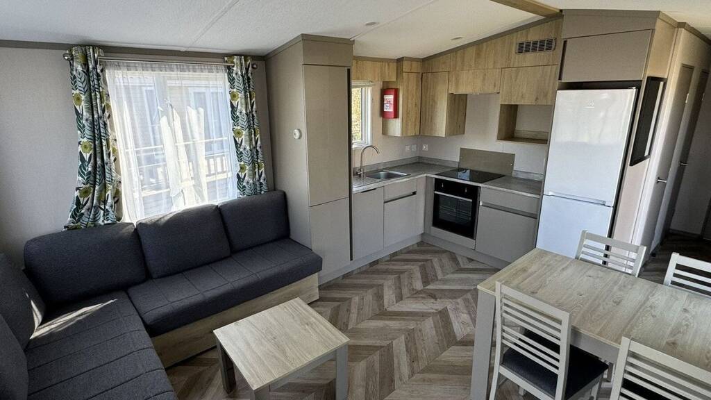 Victory Baywood - Hell, stilvoll und überraschend geräumig Das Victory Baywood ist ein modernes Chalet mit einem frischen Erscheinungsbild und einer durchdachten Raumaufteilung. Dank klarer Linien, pflegeleichter Außenverkleidung und großer Fensterfronten wirkt dieses Chalet hell, offen und einladend. Das zentrale Wohnzimmer an der Vorderseite ist ein wunderbarer Ort zum Entspannen. Große Fenster sorgen für viel Tageslicht und ein großzügiges Raumgefühl. Die gemütliche Sitzecke grenzt direkt an den praktischen Essbereich - ideal für gesellige Stunden. Die offene Küche ist clever eingerichtet und mit allem ausgestattet, was man braucht: ein elektrisches Kochfeld, ein Kühlschrank mit Gefrierfach und ausreichend Stauraum. Perfekt für alle, die auch im Urlaub gerne selbst kochen. Das Victory Baywood verfügt über zwei Schlafzimmer: ein großzügiges Hauptschlafzimmer mit Doppelbett und ein zweites Schlafzimmer mit zwei Einzelbetten - ideal für Familien oder Gäste. Das moderne Badezimmer ist mit einer Duschkabine, einem Waschbecken und einem WC ausgestattet. Warum das Baywood wählen? ? Frischer, moderner Look ? Helles, komfortables Wohnzimmer ? Pflegeleichte Ausführung Neugierig geworden? Vereinbaren Sie eine Besichtigung auf Siblu De Lente van Drenthe und entdecken Sie selbst, ob das Baywood Ihr ideales Feriendomizil ist!