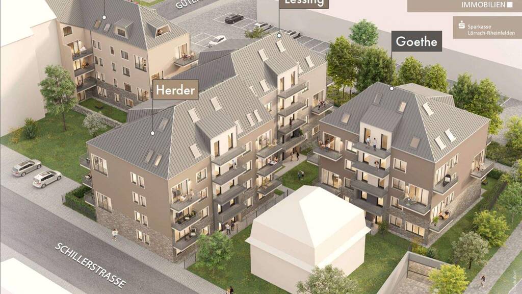 In der Schillerstraße in Rheinfelden (Baden) entsteht ein architektonisch ansprechendes Ensemble aus vier modernen Gebäuden mit insgesamt 56 Eigentumswohnungen in KfW40 QNG Bauweise. Jedes Haus trägt den Namen eines bedeutenden Schriftstellers der Weimarer Klassik: Hölderlin - Lessing - Goethe - Herder Zusammen bilden sie eine harmonische Einheit: Das Schillerquartett. 56 Eigentumswohnungen in vier modernen und zukunftsfähigen Mehrfamilienhäusern bieten Ihnen und Ihren Lieben ein Zuhause, das alle Möglichkeiten vereint.